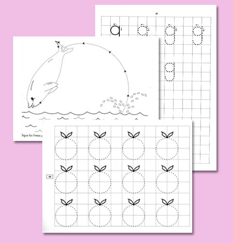 Ejercicios de trazo de líneas, formas y grafismos que conducen de manera gradual a la adquisición de la lectura y la escritura.